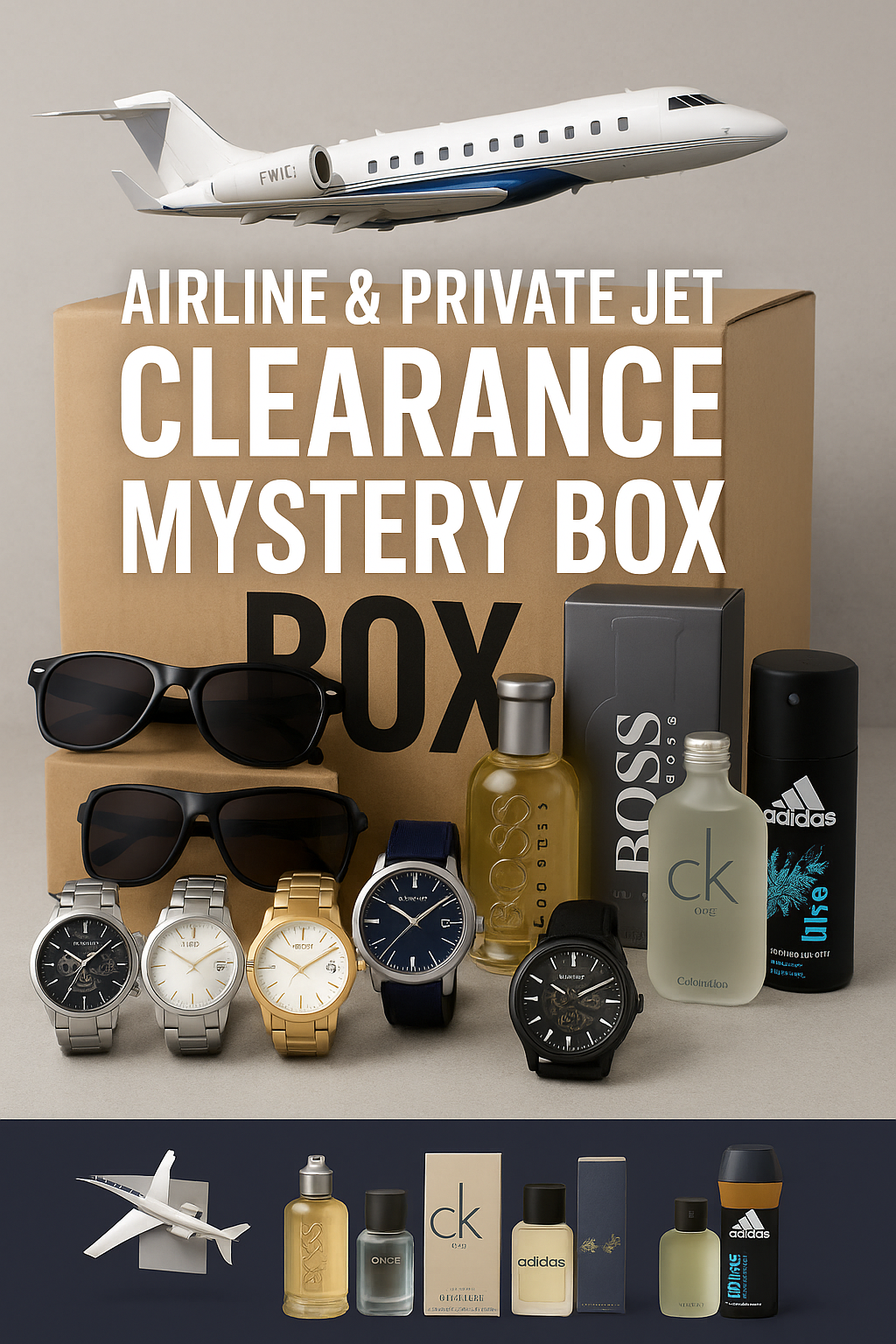 Private Jet Charter Mystery Case – 5 Luxury Items – Designer Goods, Fragrances & Tech, watches, swiss watches