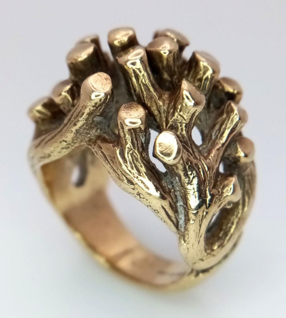 An Abstract 9K Gold Heavy Ring. Foliage-esque design. Size K 1/2. 16.9g weight.